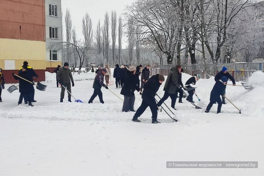 В Гомеле педагоги, родители и дети убрали снег рядом с СШ № 57