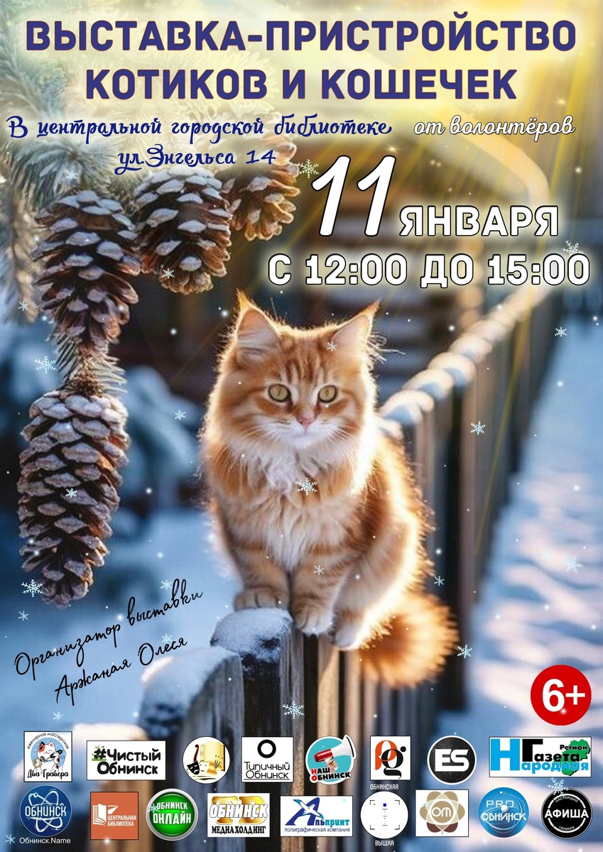 🐱11 января с 12:0 до 15:00 в Центральной библиотеке в Обнинске пройдёт выставка-пристройство кошек и котят от волонтёров. Если вы хотите взять себе животное, необходимо при себе иметь паспорт.