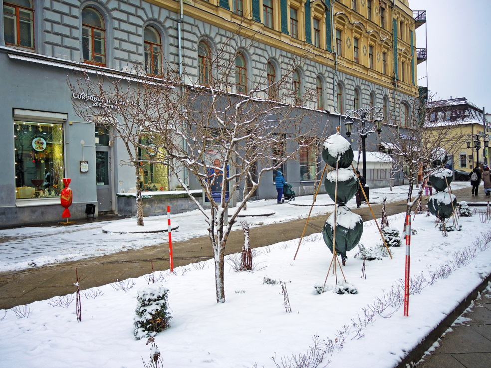 В праздничном сезоне НГ2026 в Самаре, пожалуй, самой большой неожиданностью стало тематическое оформление пешеходной части улицы Ленинградской. Совершенно точно настолько красиво здесь не было никогда. Все объекты полностью новые. Правда, наполнение шло очень неторопливо. Монтаж закончился в семь часов вечера 31 декабря. Да-да. Когда весь город уже не готовился к празднику, а давно начал его отмечать, монтажники на Ленинградской ещё работали. Видел сам лично. Такая неторопливость, конечно, не могла не вызывать, как минимум, недоумение. А с учётом того, что творилось за пределами исторического центра, оно быстро переходило в раздражение. Чтобы немного передать предновогоднюю атмосферу Самары, тоже начну издалека. Предлагаю посмотреть, как эта часть улицы выглядела 23 декабря днём. Часть объектов уже была в наличии. Но в первой части прогулки собрал просто общие виды и немного общего оформления для затравки. Мы пройдём от улицы Куйбышева до Галактионовской. На пересечении с Куйбышева ещё