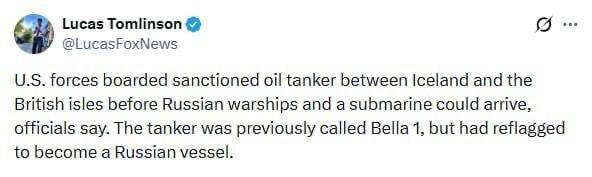 🇷🇺🇻🇪🇺🇸 Военные США поднялись на борт нефтяного танкера в Атлантическом океане до прибытия российских военных кораблей и подводной лодки — журналист Fox News