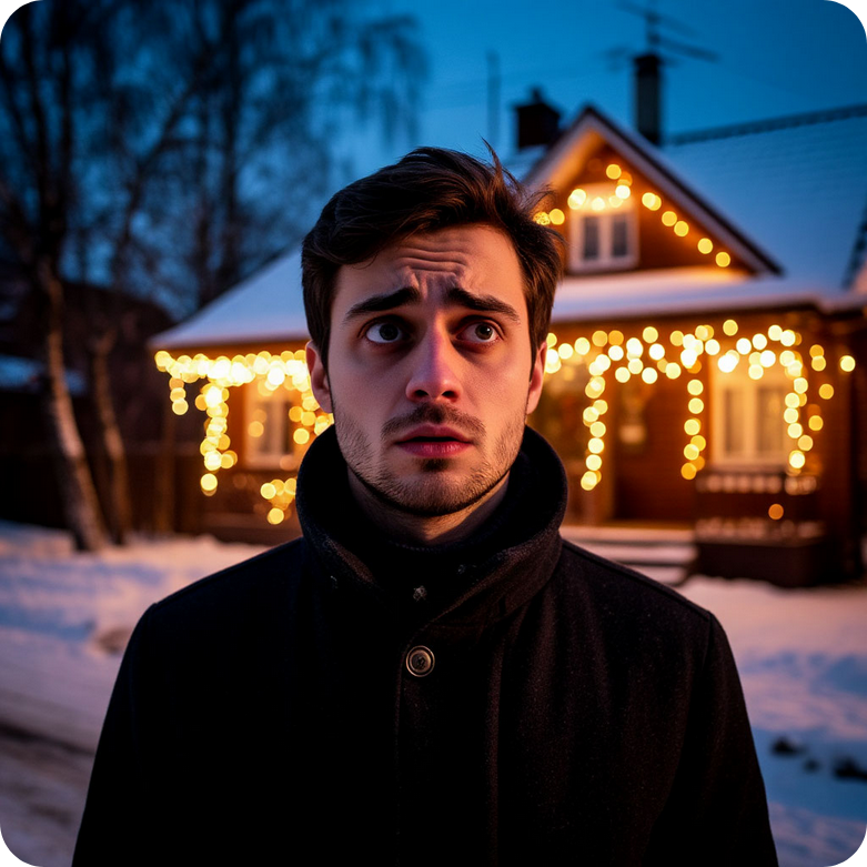 Муж вышел из комнаты с паяльником в руках – чинил гирлянду.