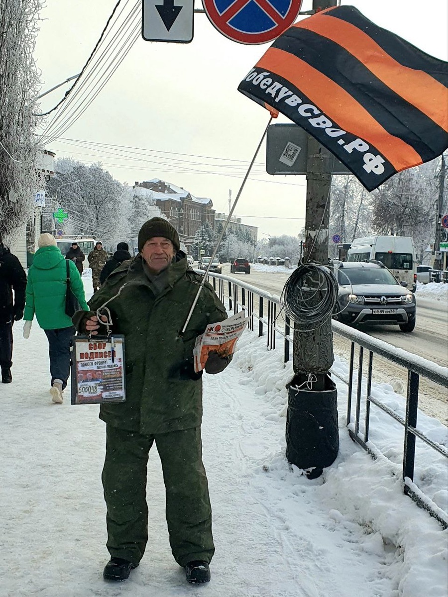 проведён одиночный пикет со сбором подписей в суд и за полномочия Президента РФ. Короткий одиночный пикет прошел без плаката, только с Георгиевким флагом и словесными разъяснениями, на улице мороз. 50 номеров газет было роздано, 3 человека обратились с иском в Верховный суд https://gorbsud.ru/form/?utm_content=hq-255 и 5 подписали коллективное обращение к органам власти за дополнительные полномочия Путину В.В. ЗаПобедувСВО.рф