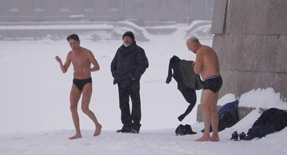 Голых купальщиков заметили у ледяной проруби в центре Петербурга в Рождество