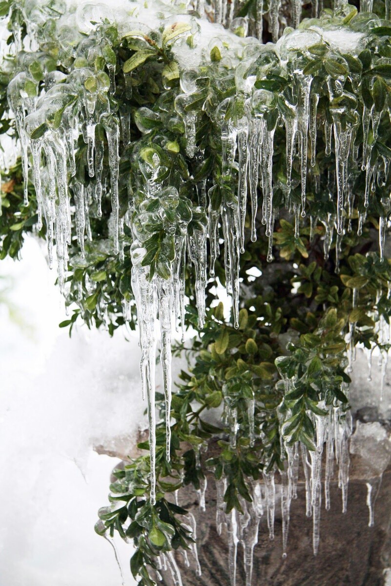 Ваши широколиственные вечнозелёные растения (например, рододендроны, падубы) могут начать восстанавливаться по мере таяния последнего льда, но затем они могут частично сбросить листву. Это не обязательно означает, что ваши растения безнадёжны. Многие пригнутые деревья выпрямятся сами по себе, когда лёд растает, в то время как другим может потребоваться подвязка или укрепление. Избегайте стряхивания льда с ветвей вручную, так как это может вызвать дальнейшие повреждения.