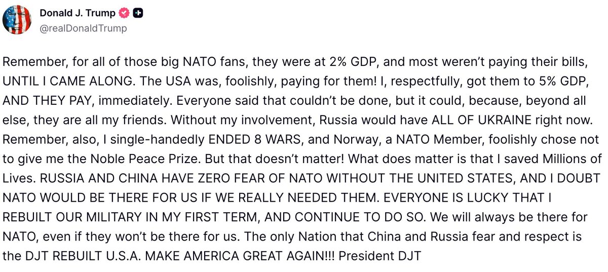 вообще все рухнуло! 🤦♂️ По сути, он просто напоминает о себе, пытаясь показать, что именно он – гарант безопасности. Но давайте посмотрим правде в глаза: кто сейчас реально боится НАТО? Те, кто не боится – это Россия и Китай. И это факт. 🇷🇺🇨🇳 Трамп продолжает говорить о "сильной армии", которую он "восстановил". Ну-ну, посмотрим, как эта армия себя покажет, если придется реально действовать. 🤔 И конечно же, не обошлось без привычного преувеличения собственной роли и принижения других. 🤷♂️ "Только США имеют вес"... Ну да, ну да, весом американских долларов. 💸 В общем, привычный политический цирк. 🤡 А пока Трамп рассказывает сказки, мир меняется, и Россия строит свое будущее, не обращая внимания на американские амбиции. 💪 @obsudi_obsudi