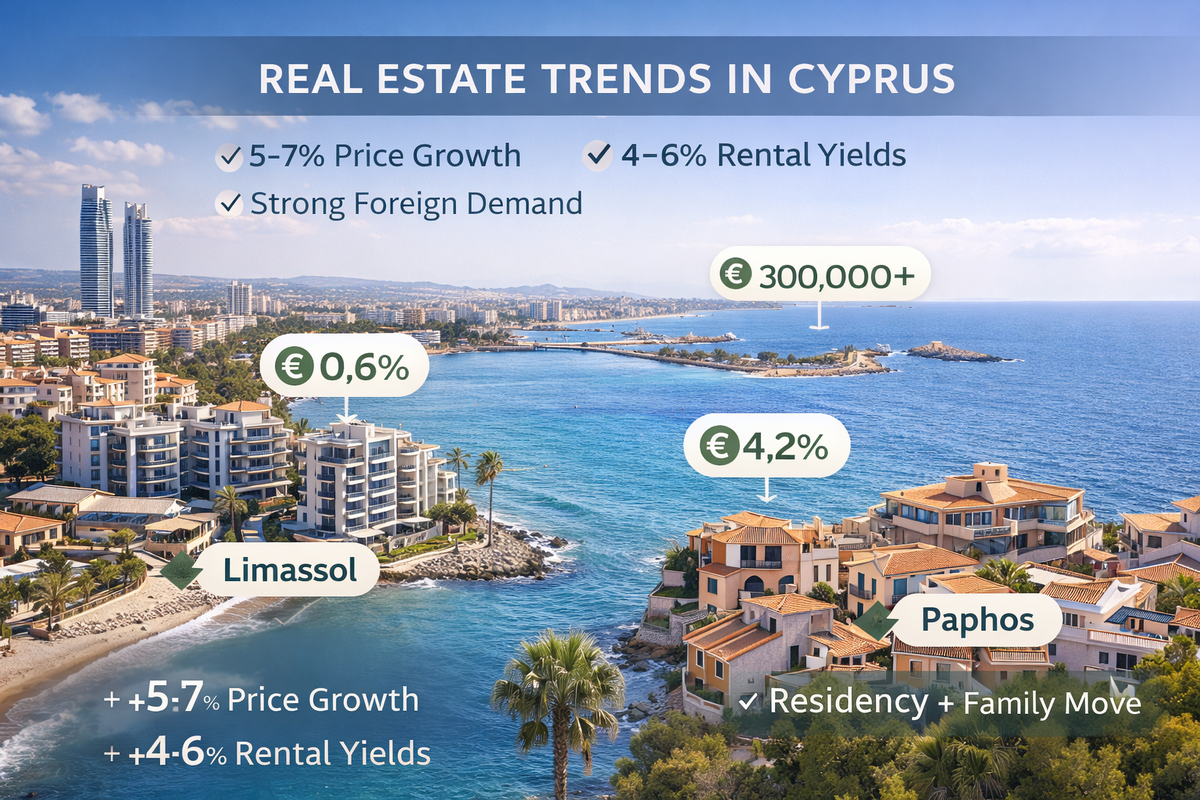 Работая с рынком недвижимости Кипра не первый год, я всё чаще вижу один и тот же сигнал: остров входит в фазу зрелого, устойчивого роста. 2026 год обещает быть сильным уже по простой причине — ежемесячный ипотечный платёж здесь фактически сравнялся с типовой арендной ставкой. Для местных жителей это означает одно: платить за собственную квартиру, даже купленную в кредит, стало выгоднее, чем отдавать те же деньги за аренду. Это фундаментальный сдвиг, который всегда приводит к росту спроса — и он уже заметен в цифрах. По итогам 2024–2025 годов совокупный объём сделок на рынке недвижимости Кипра превысил 5,7 млрд евро. В 2025 году фиксировались рекордные месяцы продаж — самые высокие за последние 17 лет. Это говорит не о спекулятивном всплеске, а о системном интересе со стороны как местных, так и иностранных покупателей. После периода активного удорожания рынок входит в более здоровую фазу. Средний рост цен по стране составляет около 4–5% в год против 7–8% ранее. Причина проста — увеличил