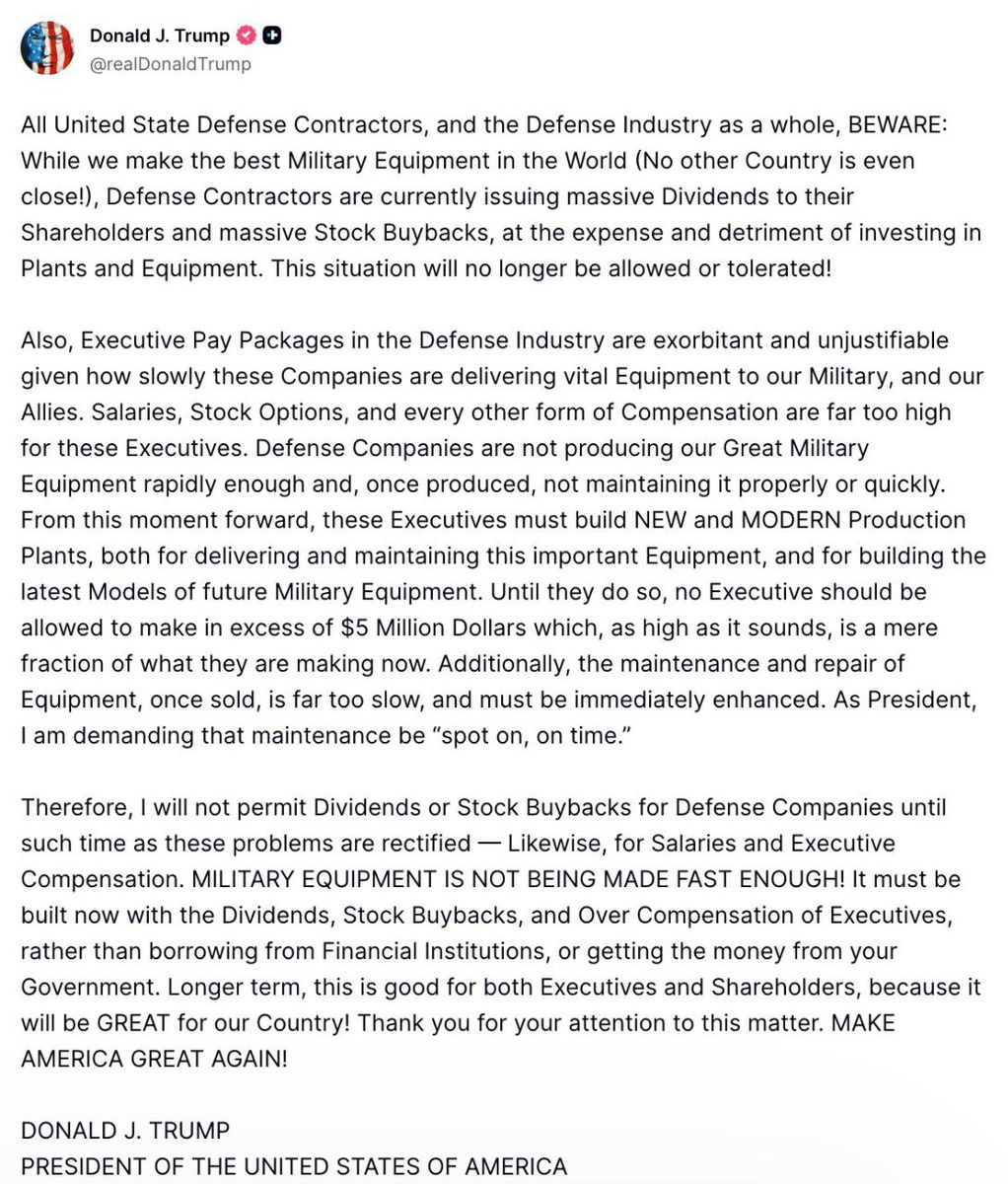 Trump takes aim at DEFENSE INDUSTRY