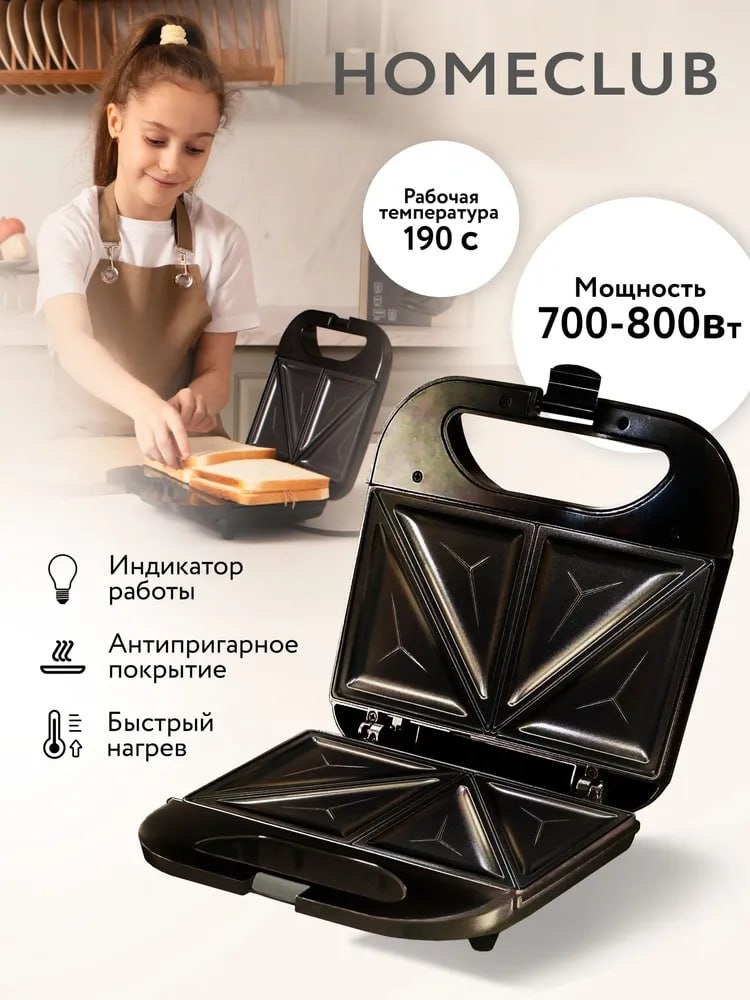 Бутербродница HOMECLUB TXS-081 позволяет быстро и без усилий приготовить горячие бутерброды. Отличительные особенности: - Рассчитана на 4 сэндвича/бутерброда. - Имеет антипригарное покрытие. - Материал рабочей поверхности: металл. - На корпусе предусмотрены индикаторы работы и нагрева. - Мощность этой модели составляет 750Вт. - Длина шнура: 0.75 м - Размеры: 122 х 122 х 250 см. - Вес: 1,5 кг. ⭐️ 4,8, более 5900 тыс. отзывов. 💸 1046 руб. 🛒 https://ozon.ru/t/zqgLm6g