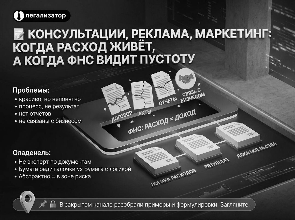🧾 Консультации, реклама, маркетинг: когда расход живёт, а когда ФНС видит пустоту