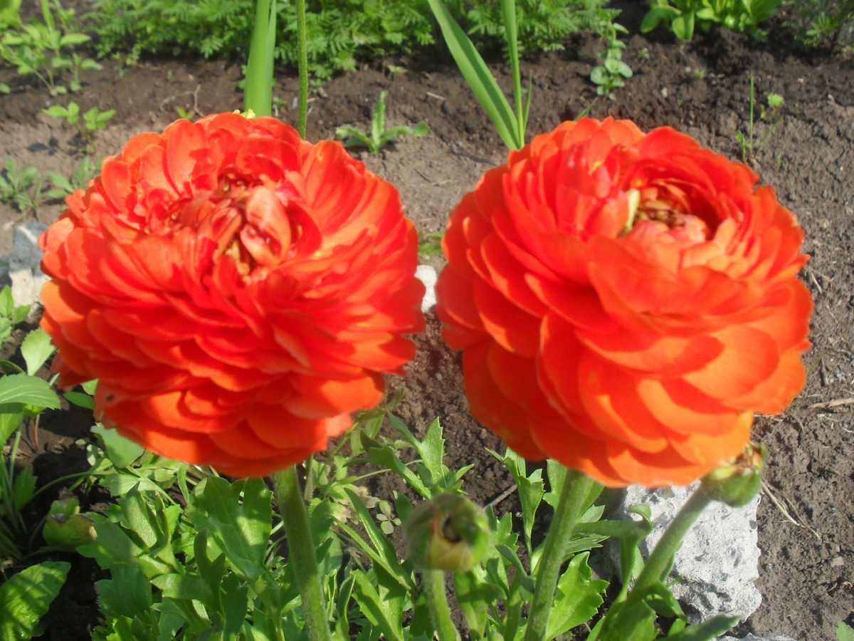 Цветок - шедевр. Плотный бутон, яркая расцветка, но такая нежность, глаз не оторвать. Казалось бы, цветок с таким простым названием - Лютик, а какое восхищение вызывает, а! Расцветки у этого растения - белые, желтые, лимонные, розовые, оранжевые, красные и еще множество оттенков. Растение кустового типа из одного клубня вырастает " букет" из 3-5 бутонов. Высота растения достигает 50 см. Вырастить его не сложно если взять не семена, а клубни. Клубеньки у лютика не большие 2-3 см. в диаметре, похожие на паучков, научное название "корневые шишки". Из опыта скажу, два раза сеяла семенами лютик, от разных производителей, всходы были равны нулю. Поэтому не тратя время и силы, покупаю клубни и высаживаю. Выбирая место посадки обращаем внимание на то, что при высоких температурах лютик прекращает свой рост. Самая оптимальная температура до +20 С., а значит выбираем место где в самый знойный час, на растение будет подать тень от какого либо дерева или кустарника. Лютик влаголюбивое растение,