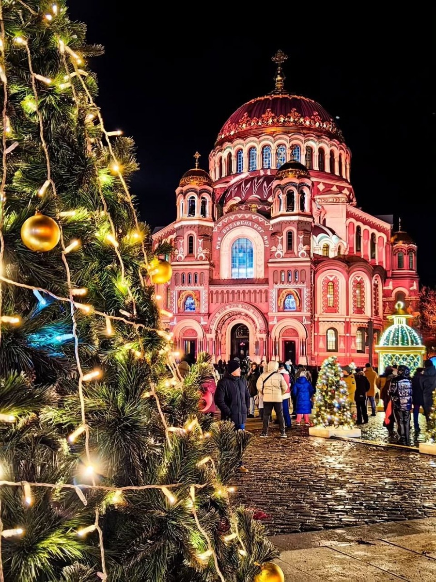 Путем слияния света и звука образуется рождественское чудо🪄Тема — русские народные промыслы. 📆Новогоднее мультимедийное представление будет транслироваться на Никольский морской собор до 14 января, с 18:00 до 22:00 ежедневно #Кронштадт #праздники #каникулы #афиша #кудасходить сходить