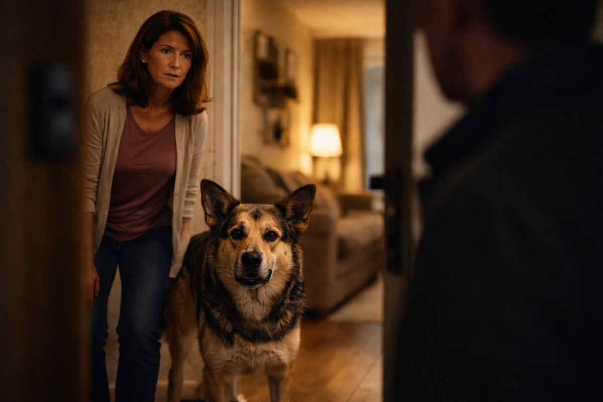Рик в тот день, по её словам, сразу насторожился: замер, встал между ней и дверью, шерсть встала дыбом.