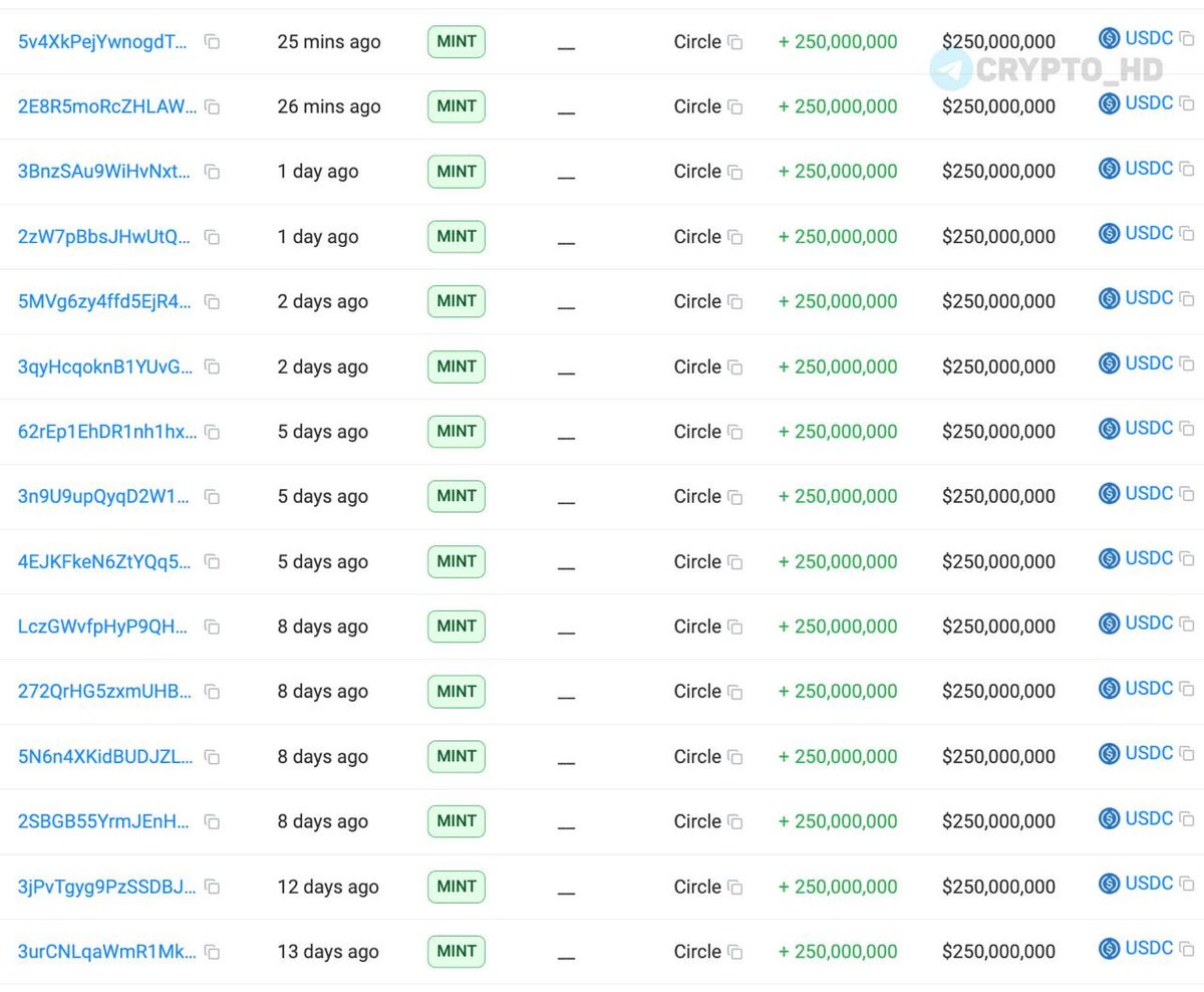 🤔 В Circle напечатали #USDC уже на $2,250,000,000 с начала этого года.