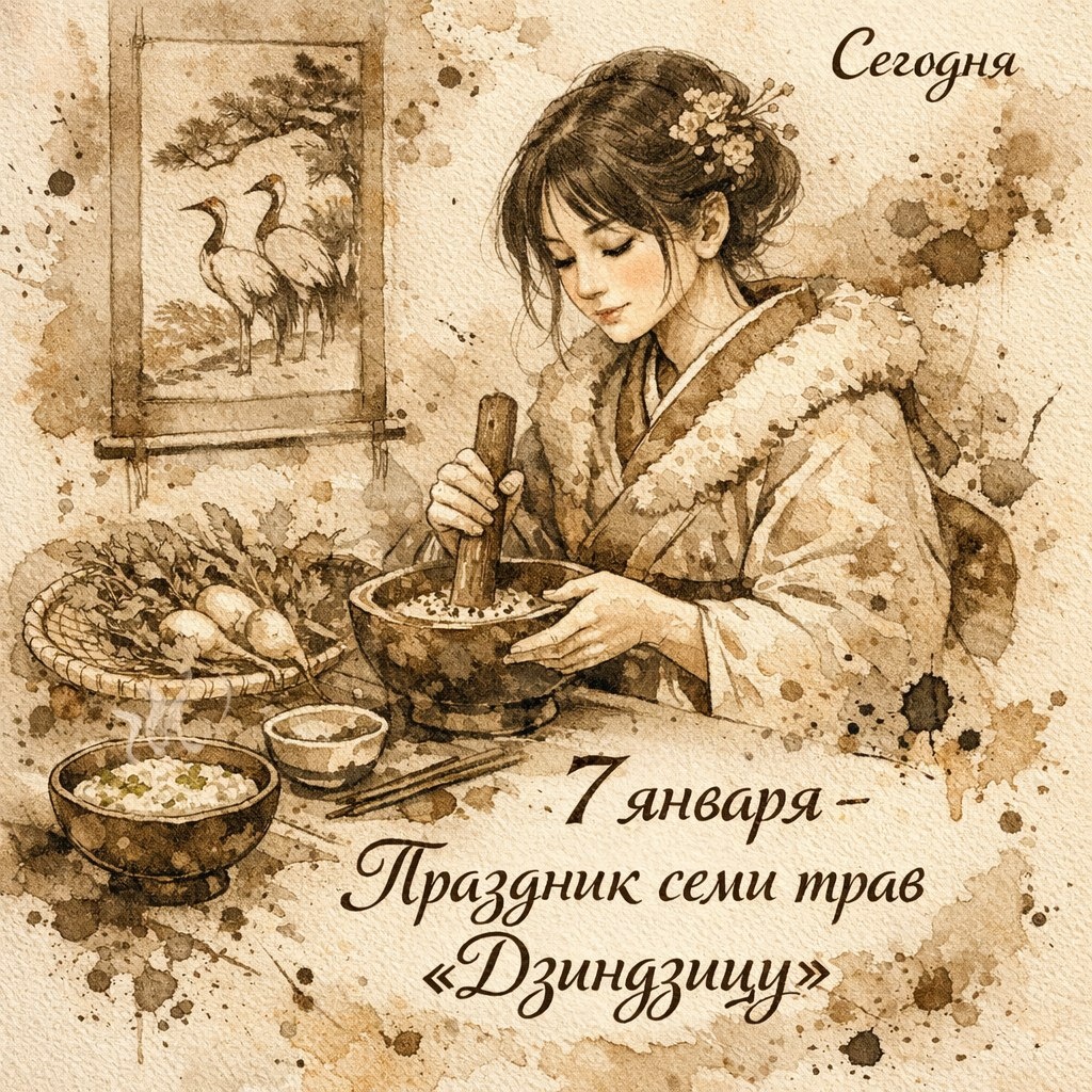 В японской традиции Новый год — это не просто один праздничный день, а целый цикл особых событий, наполненных глубоким символизмом. Одним из самых интересных и полезных для здоровья праздников цикла считается Дзиндзицу (яп. Jinjitsu), который отмечают 7 января по лунному календарю. Давайте погрузимся в атмосферу этого удивительного обычая и узнаем, почему «день семи трав» остаётся актуальным и в современном мире. Дзиндзицу — один из пяти сезонных праздников (яп. сэкку), которые на протяжении веков отмечались при императорском дворе. Название праздника состоит из двух иероглифов: Таким образом, Дзиндзицу можно перевести как «День человека». Считается, что в этот день каждый человек прибавляет к своему возрасту один год — традиция, которая подчёркивает единство людей и начало нового жизненного цикла. Центральным элементом праздника является ритуал приготовления жидкой рисовой каши с семью счастливыми травами (яп. нанакуса-гаю). В состав «счастливой семёрки» традиционно входят: Каждая из