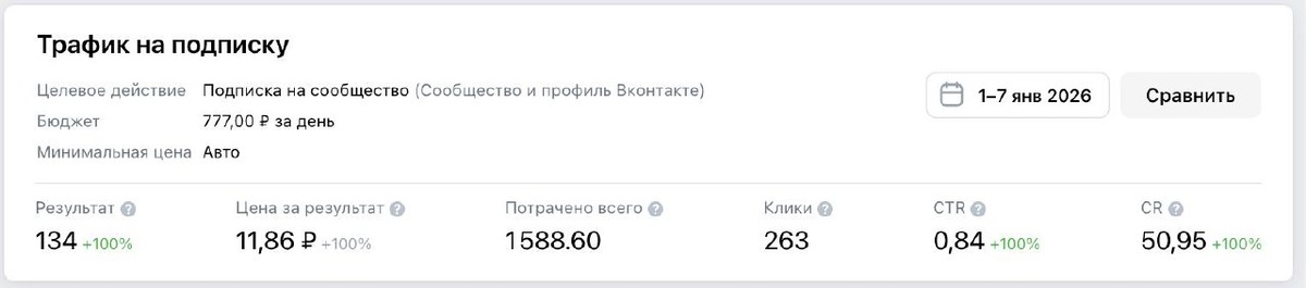 + 134 подписчика по 11,86 ₽ в группу ВК