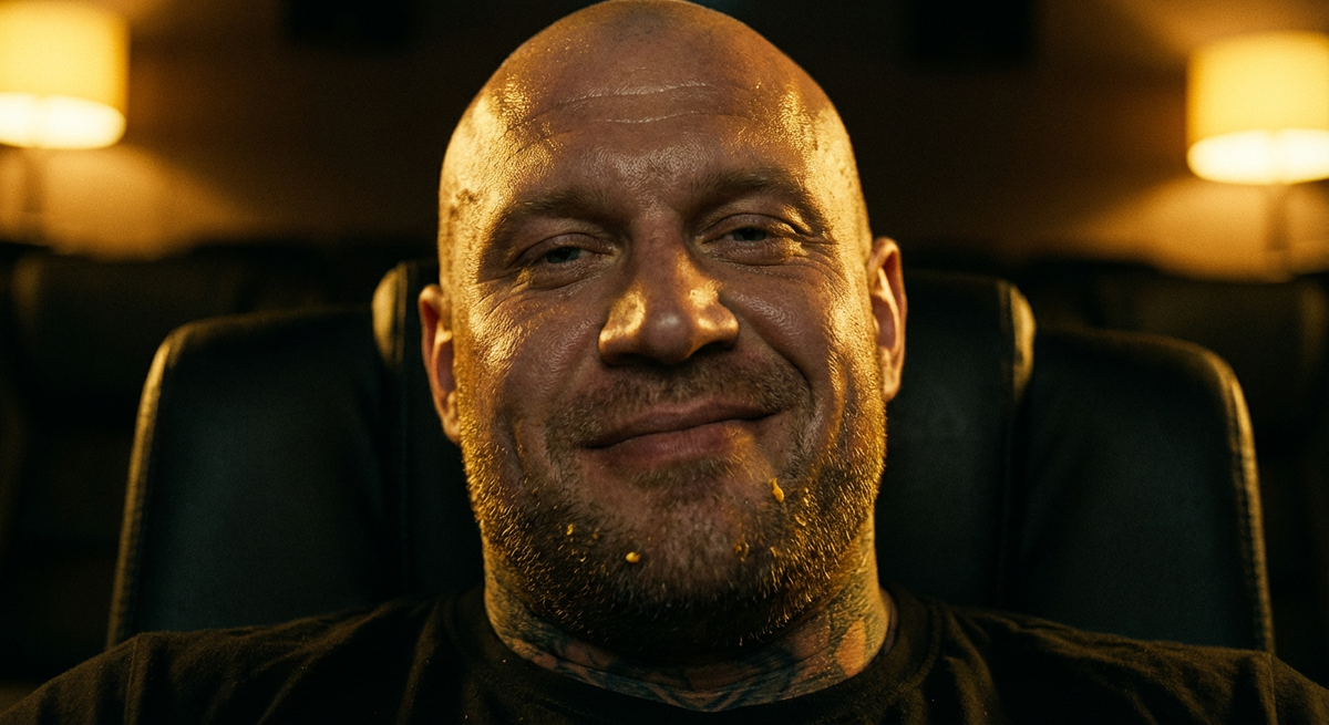 Мы с женой решили устроить романтический вечер. Купили билеты на премьеру блокбастера. VIP-ряд, диваны по центру. 5000 рублей за пару. Заходим в зал с попкорном. Свет еще горит. А на наших местах сидит парочка. Огромный лысый детина, похожий на шкаф, и размалеванная девица. — Извините, — говорю я вежливо. — Это наши места. Вот билеты. Ряд 8, места 10 и 11. "Шкаф" лениво повернул голову, жуя начос. — И чё? — В смысле "и чё"? — опешил я. — Освободите, пожалуйста. Вы перепутали. — Слышь, очкарик, — ухмыльнулся он. — Я ниче не перепутал. Я зашел, увидел свободные места, сел. Кто успел, тот и съел. Иди вон на первый ряд сядь, там пусто. — Но мы заплатили за эти места! — возмутилась жена. — А мне пофиг! — рявкнул качок. — Я сказал — вали отсюда! Или очки разобью! Мешать мне кино смотреть... Зал притих. Наглость зашкаливала. — Молодой человек, — вмешалась женщина с соседнего кресла. — Ну так же нельзя. У людей билеты... — Заткнись, курица! — рыкнул он. — Тебе тоже втащить? Я понял, что разгов