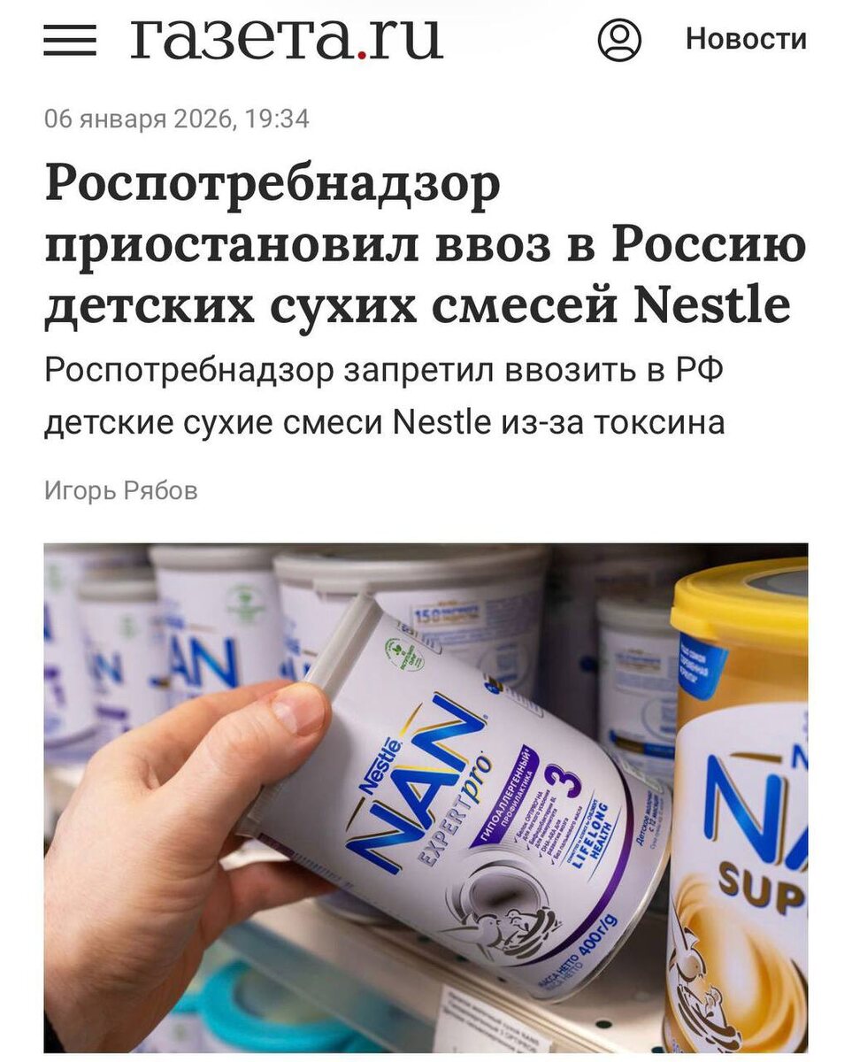 Роспотребнадзор приостановил поставки нескольких смесей из‑за риска наличия токсина цереулида. Под ограничения попали Nan 1/2 Optipro, Nan Supreme, Nan Experpro, Nan безлактозный, PreNan, Nestogen комфорт и «Алфаре амино» с датами производства с 15.04.2025 по 27.11.2025. Ведомство сообщает, что ситуация находится на контроле, идут проверки партий.