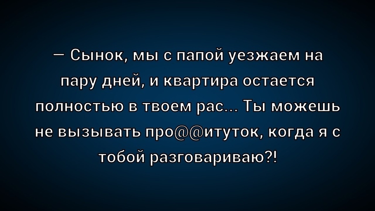 ☺☺☺ — Прикинь, этот придурок, чтоб не мыть тарелки, одевает на них целлофановый пакетик перед едой, потом снимает и выбрасывает в мусорку, и всё! И тарелку мыть не надо... — Слушай, да он гений! ❗️❗️❗️ Наш Дзен: https://dzen.ru/anekdotyizv . Наш Телеграм: https://dzen.ru/id/625d2f00f1556857f5751a7b .