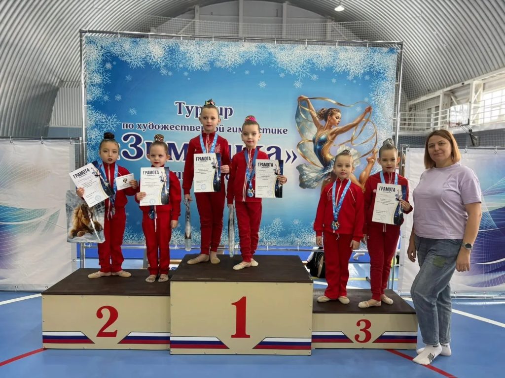 В канун Нового года в селе Дмитриевское Ставропольского края прошли соревнования по художественной гимнастике «Зимушка». Воспитанницы спортивной школы Песчанокопского района под руководством тренеров-преподавателей Анны Викторовны Машкиной и Олеси Ивановны Ефименко выступили блестяще, завоевав множество наград и продемонстрировав высокий класс! 1 место: