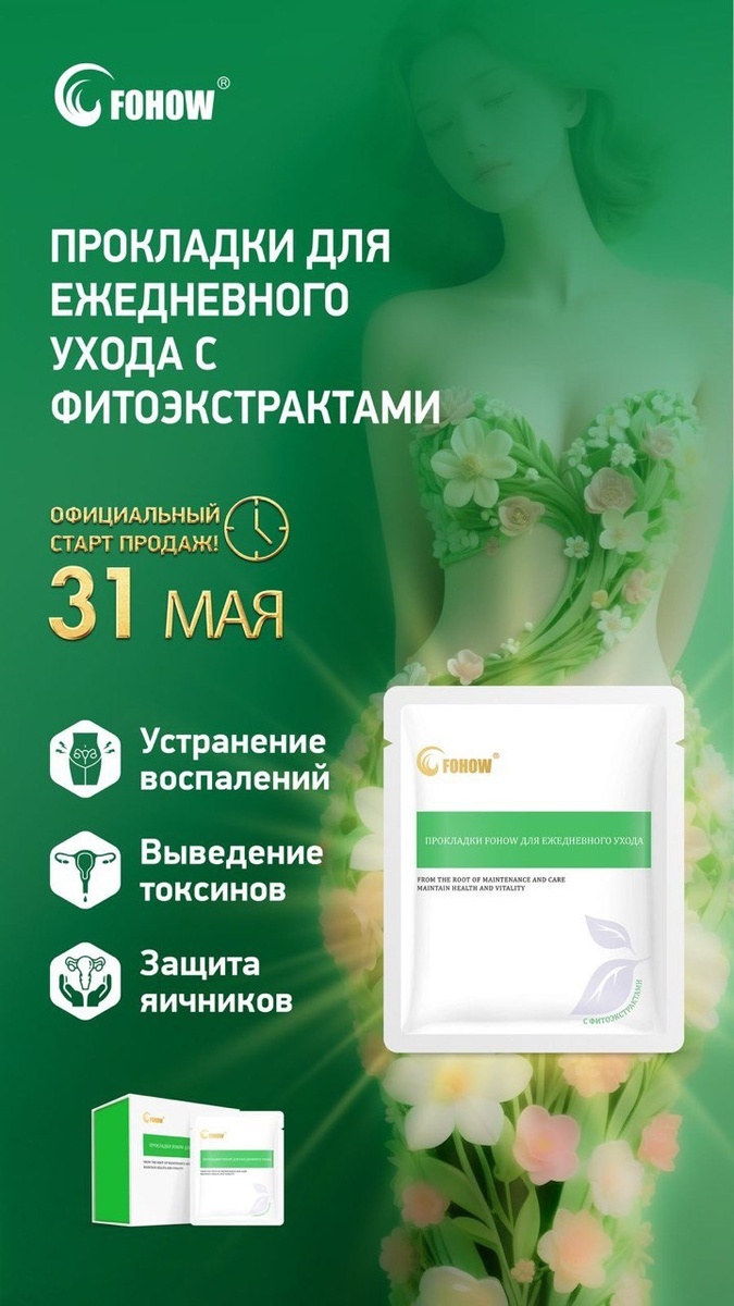 Ежедневные прокладки — привычный предмет гигиены современной женщины. Но прокладки, которые предлагает компания FOHOW оказывают оздоравливающее и противовоспалительное действие. Они устраняют воспаление, особенно в тазовой полости, выводят токсины, поддерживают состояние яичников, регул, оказывают косметический эффект. Также эти прокладки повышают тонус влагалища, восстанавливают его гладкие мышцы.
