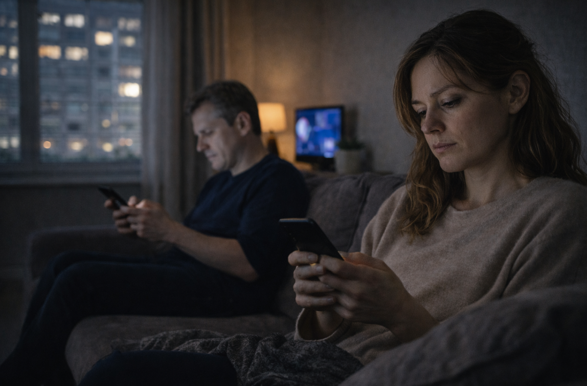 В тот вечер ничего особенного не происходило. Не было ссоры, не было скандала, не было громких слов. Мы просто сидели в комнате, каждый в своём телефоне, как сидели сотни раз до этого. За окном медленно гасли окна в соседнем доме, телевизор бормотал что-то фоном, и вся эта бытовая тишина казалась привычной и безопасной. Именно в такие моменты правда обычно и вылезает.