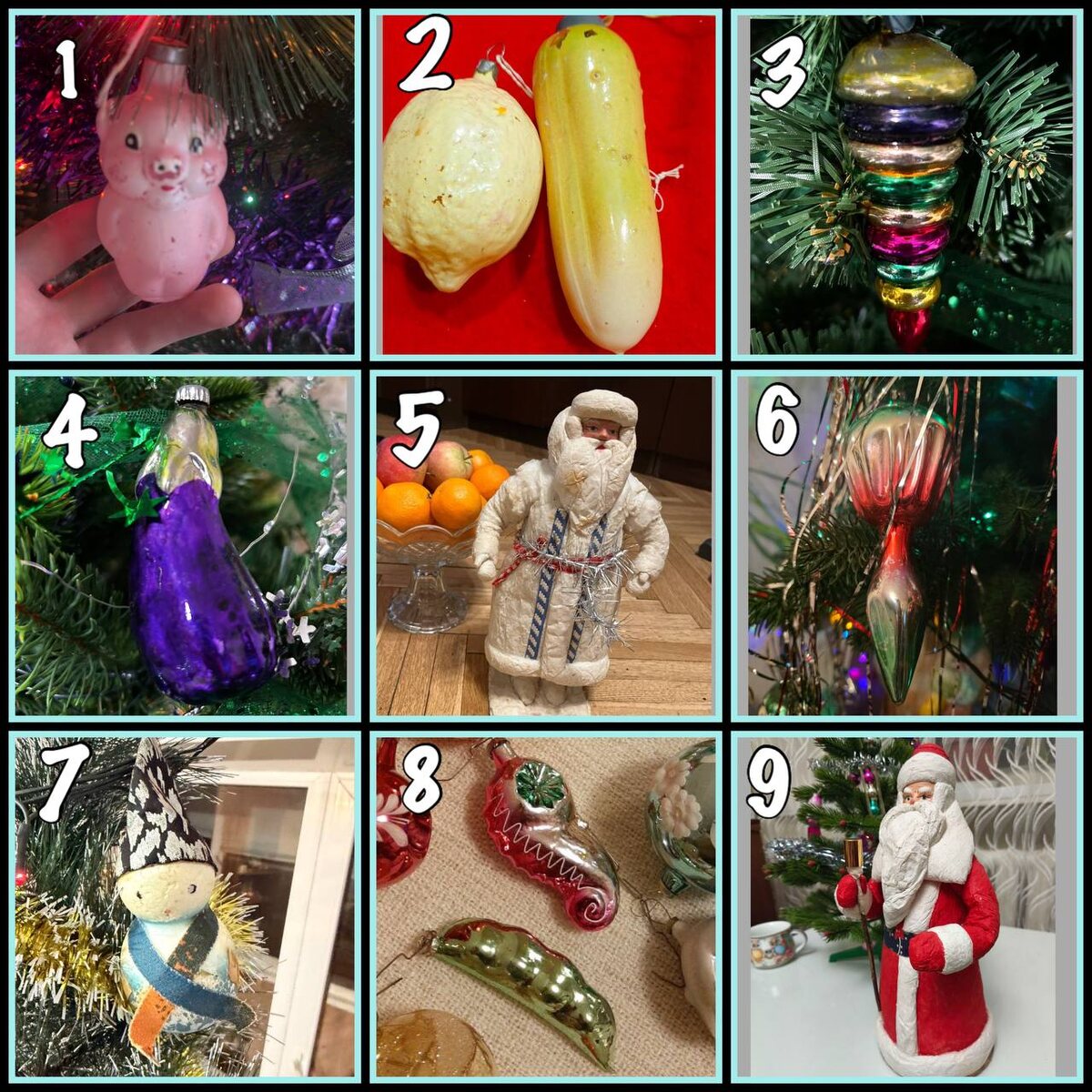 😌🤓😛😌😋🤓😉 Первый отбор по критерию «Редкость». Было не просто, решила выбирать те, которые я раньше НЕ видела. В первый раунд прошли игрушки: 1️⃣Поросёнок с усами 2️⃣Огурец и лимон 3️⃣Юла 4️⃣Баклажан 5️⃣Дед Мороз #1 6️⃣НЁИ - неопознанная ёлочная игрушка 7️⃣Снеговик с лентами 8️⃣Стручок гороха и непонятная завитушка 9️⃣Дед Мороз #2 Второй отбор по критерию «Удивление / непонятность». Остались: 1️⃣Поросёнок с усами - из-за усов 2️⃣Огурец и лимон - вообще не предполагала, что их можно вешать на елку 😅 4️⃣Баклажан - опять же потому, что овощь 5️⃣Дед Мороз #1 - первый раз узнала и увидела своими глазами Деда Мороза из папье-маше 6️⃣НЁИ - неопознанная ёлочная игрушка - восторг! Кол-во предположений так и не перешло в качество 8️⃣Стручок гороха и непонятная завитушка - горох удивил опять, что на елке растёт, а завитушка - просто странная)) вроде шарик, но с хвостиком Снеговик не прошел, потому что не так сильно удивил, Дед Мороз #2 потому что был второй по счету, уже не было такого