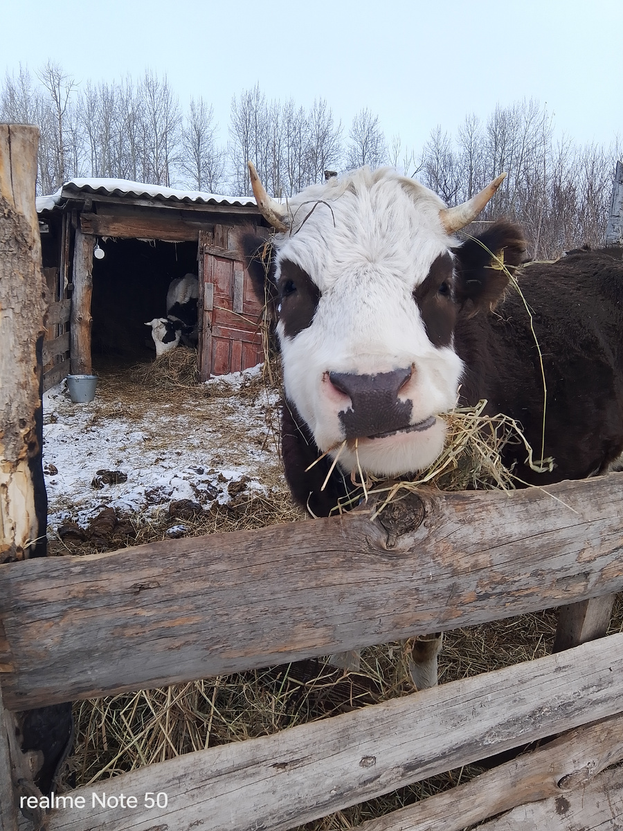 Сегодня корову утром доила курица пришла в гости. У второй коровы видите, Юлька сено тырит, она такая не пропадёт. Ну ладно буду на этом заканчивать , до новых встреч . Пока 👋 пока .