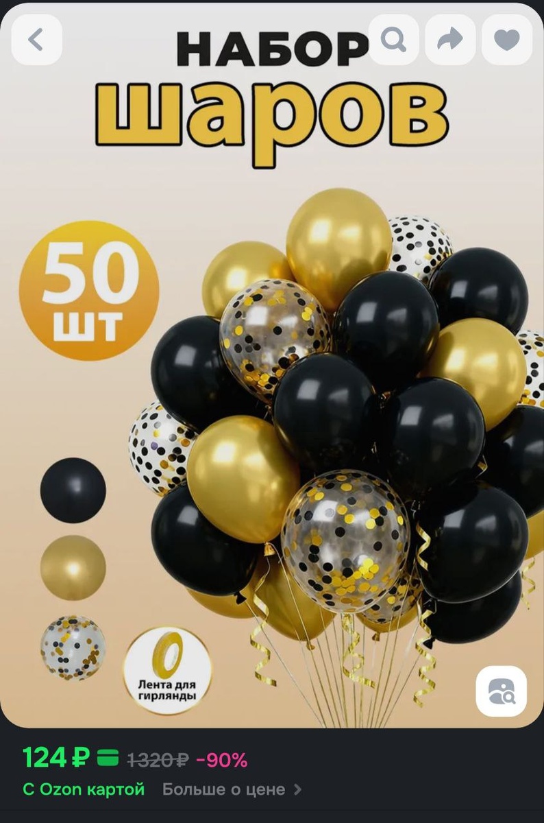 📦Воздушные шары на день рождения с конфетти, черное золото, 50 шт - 124р