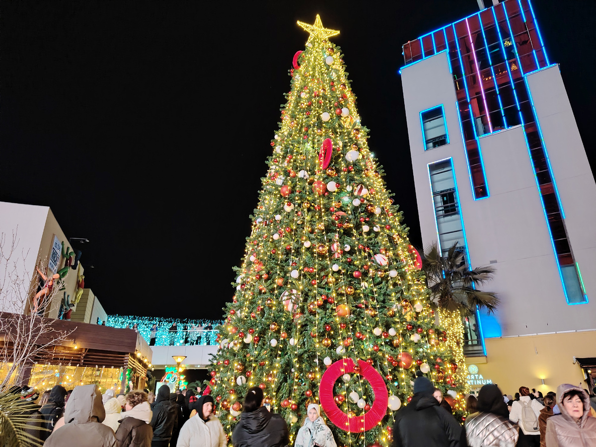 Днём Адлер выглядит особенно уютно. Город украшен к Новому году, и это создаёт удивительное ощущение праздника среди пальм и морского воздуха. Гирлянды, ёлки, сверкающие фигуры — всё это смотрится легко и совсем не вычурно.