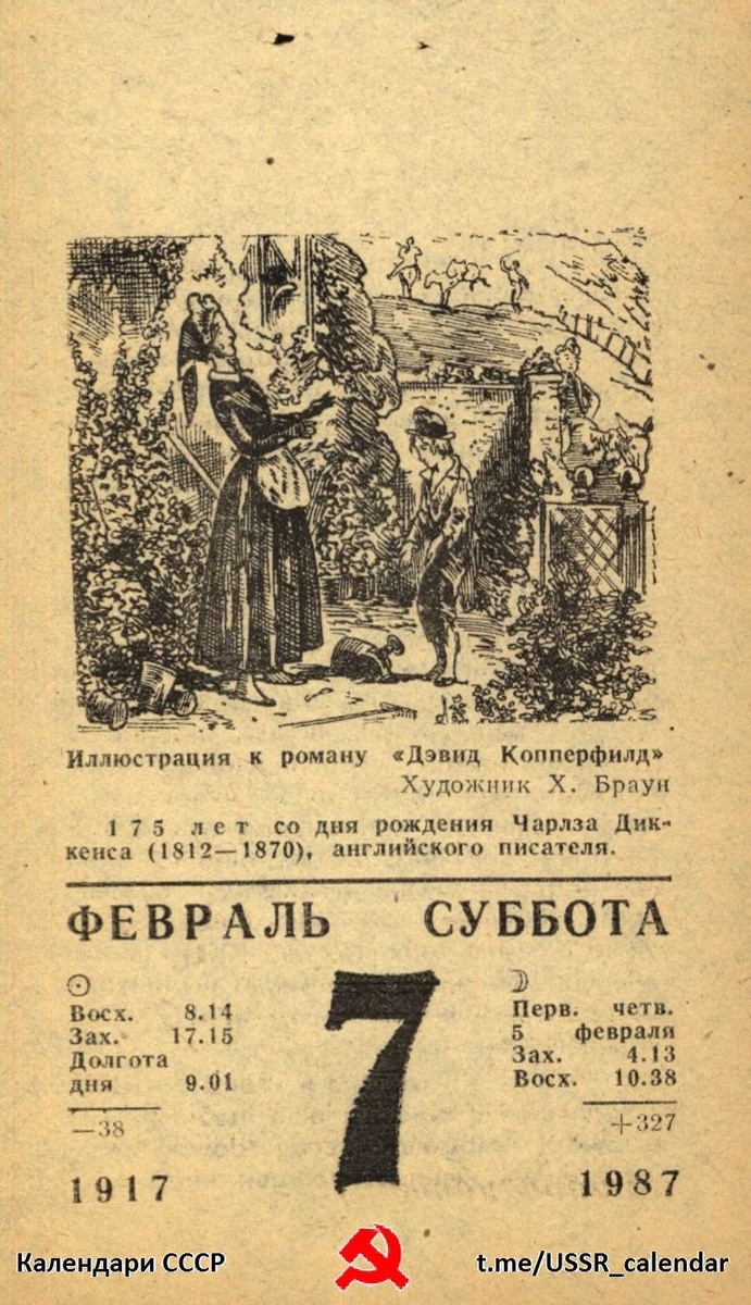 175 лет (1812) со дня рождения Чарлза Диккенса. Графика. Иллюстрация к роману "Дэвид Копперфилд" Х. Браун Цитата И.А. Гончаров Сын портового чиновника, Чарлз Диккенс с детства узнал нищету и лишения. Календари СССР #ЧарлзДиккенс #Графика #Иллюстрация #ХэблотНайтБраун #Цитата #ГончаровИА