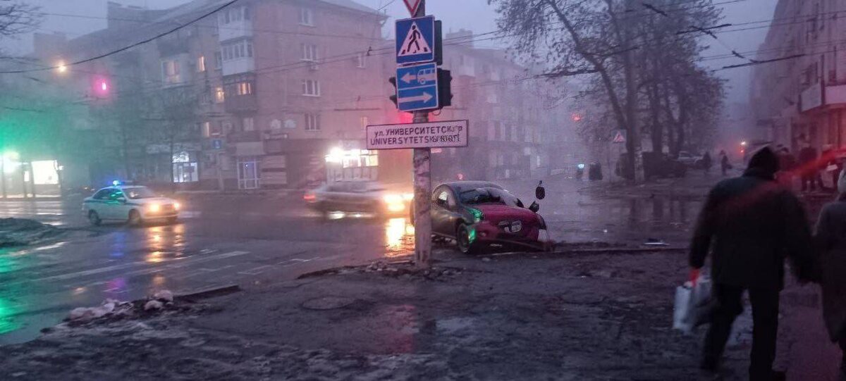 ДТП сегодня вечером на пересечении ул.Университетской и пр.Освобождения Донбасса в Донецке