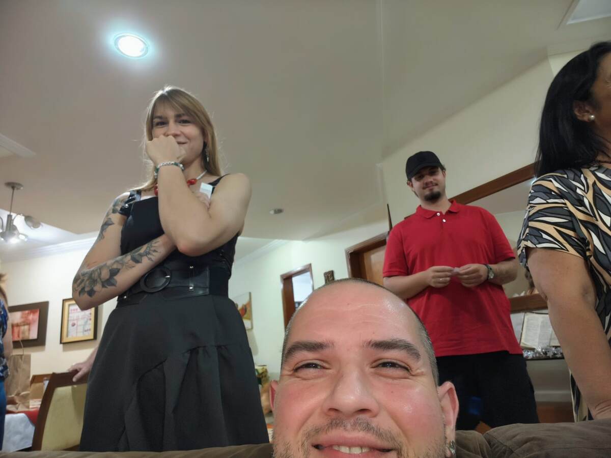 Подарки попадались самые разнообразные - от упаковки сладостей до штопора для вина. Но какая же разгорелась битва за кружку с логотипом Коринтианс! Ее забирали друг у друга раз 7-8. Побывала она и в руках у Вали, но недолго - ее забрала тетя Даниэля, а потом ее же забрал себе номер один.