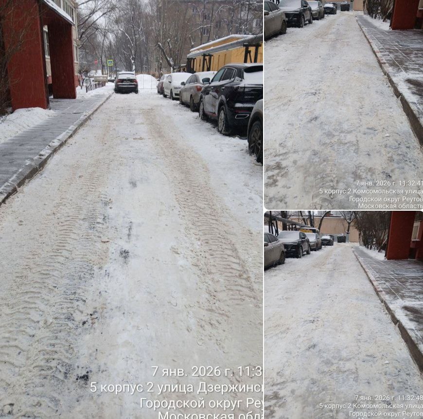 Добрый день! Уборка территории по указанному адресу от снега и наледи проведена 07.01.2027г.