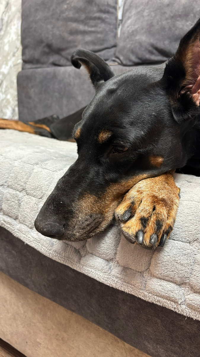 Она собака пожилая.