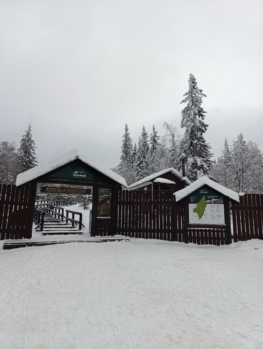 Мы не торопились... Собирались медленно, размеренно, завтракали, бродили по турбазе... Нам сказали, что всё легко, лезть никуда не надо - небольшая прогулочка. Итак, мы прибыли к входу на экотропу Здесь всё цивилизованно - обозначен вход, деревянный настил, туалеты, карты маршрутов, стенды с информацией, беседки для отдыха. Собственно, поэтому я Таганай и не оценила... Но об этом в другой раз Деревянный настил заканчивается небольшой площадкой с информационными стендами про животных Дальше просто снежная тропа. Кстати, вдоль тропы лежат мешки с песком (мелким щебнем), дабы посыпать скользкие участки на спусках/подъемах. А лес просто сказочный Крутых подъемов нет, добрались быстро. Протяженность маршрута в одну сторону чуть более 1,5 км. Высота - 853 м. На вершине скамейка, несколько видовых площадок на камнях, одна смотровая площадка с железными перилами и смотровая площадка с лестницей Виды, конечно, шикарные. Отсюда хорошо просматриваются Двуглавая сопка, Откликной гребень, Кругли