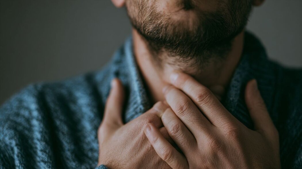 Частый симптом при тревожных расстройствах, при истерическом неврозе, при неврозе навязчивых состояний заключается в ощущении напряжения в области горла. Это может быть изолированное напряжение, или же оно может сочетаться с субъективным ощущением нехватки дыхания, сложностями при употреблении пищи или жидкости. В любом случае подобные симптомы очень неприятны, а местами откровенно пугающие.