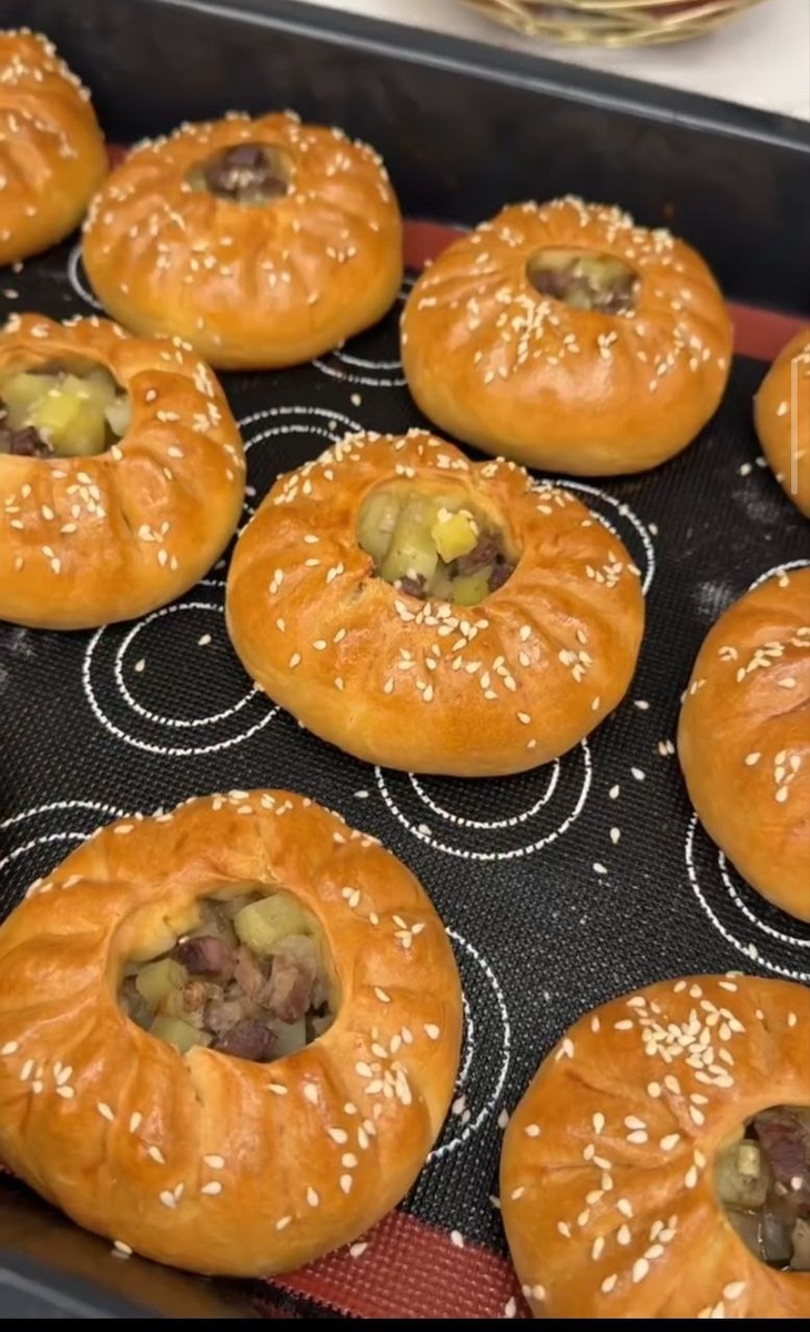🥐 Невероятно сочные, ароматные и по-настоящему домашние. Ингредиенты для теста: мука — 730 г кефир — 500 мл сливочное масло — 150 г соль — 1 ч. л. сода пищевая или разрыхлитель — 1 ч. л. Ингредиенты для начинки:🔪🔪🔪 мясо (мякоть) — 550 г картофель — 5–6 шт лук — 1 шт масло сл— 50 г соль — по вкусу перец — по вкусу Для смазывания: желток — 1 шт молоко — 1 ст. л. Для бульона... бульон — 130 мл сливочное масло — небольшой кусочек соль — по вкусу Приготовление:👨🍳👨🍳👨🍳Соединяем муку и соль. Сливочное масло растапливаем. В кефире размешиваем соду. Вливаем кефир и масло к муке и замешиваем мягкое,тесто и даём «отдохнуть» 20–30 мин. Делим на 16 кусочков. Каждый раскатываем, выкладываем начинку и формируем пироги. Перекладываем, смазываем желтком, и в духовку на 35 минут при 180°C. Достаём пироги, аккуратно вливаем в отверстие каждого по 1–1,5 ст. л. бульона. Возвращаем в духовку и ещё 20–30 минут — все зависит от мяса. Ваш вкусный шеф 👨🍳🔪 https://dzen.ru/id/61f9fc43e12e