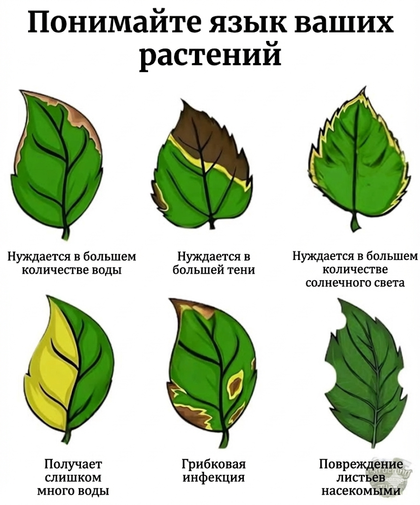 Пожелтение краёв, тёмные пятна, подсыхающие кончики или неровные отверстия на листьях — всё это визуальные сигналы, по которым можно понять, что именно не устраивает растение. Чаще всего так проявляются нехватка или избыток воды, слишком яркое солнце, тень, грибковые заболевания или насекомые-вредители. При этом важно помнить, что внешние признаки нередко перекрываются: одинаковые повреждения могут иметь разные причины, поэтому всегда стоит учитывать условия ухода в целом.
