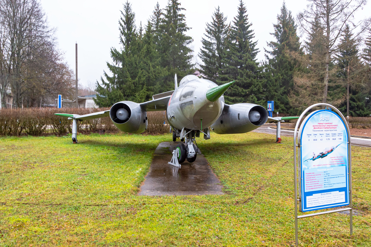 Самолет Як-28 не очень часто встречается в музеях и на памятниках. Особенно это касается бомбардировочных модификаций самолета. На память приходят Як-28Л в Монинском музее, Як-28П в Музее Вадима Задорожного, Музейном комплексе в Верхней Пышме, на территории АРЗ в г.Пушкин, а так же на Кольском полуострове и на о. Новая Земля, так же перехватчик установлен на территории Новосибирского авиационного завода, когда то массово их производившего. Несколько самолетов различных модификаций установлены на памятниках и постаментах практически на всей территории бывшего Советского Союза и даже в Германии. А вот на территории 121 Авиационно Ремонтного Завода, что располагается в подмосковной Кубинке, а если точнее то в Старом городке, имеется свой собственный музей истории завода с натурными самолетами, весьма красиво установленными в линейку на заводской территории. Среди этих машин есть и раритетный Як-28Л "Лотос" с заводским номером 2920904, выпущенный в Иркутске в 1962 году. История службы ма