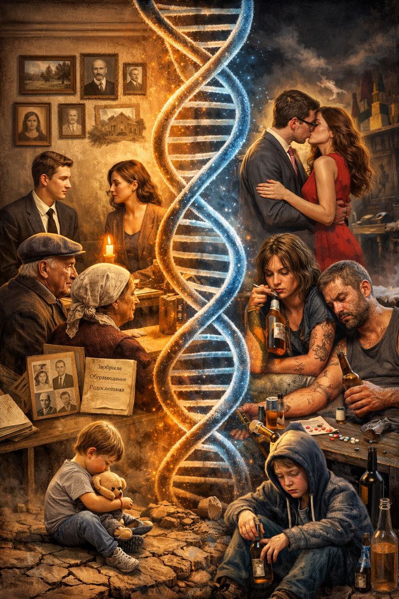 ». Он был про род, происхождение и будущее дете Сватовство — это не пережиток тёмных времён. Это был социальный фильтр. Примитивный, жёсткий, иногда несправедливый — но фильтр. Семьи встречались не для романтики. Они сравнивали биографии: ✔️кто родители, ✔️кто деды, ✔️кто пил, ✔️кто болел, ✔️кто работал, ✔️кто сидел, ✔️кто бил, ✔️кто тянул семью. Это не было «генетикой» в научном смысле. Это была житейская статистика, накопленная поколениями. 👉 Люди видели повторяемость. Видели, что хаос имеет привычку наследоваться. 👉Видели, что устойчивость тоже. Сегодня всё это объявлено мракобесием. Теперь считается, что: — прошлое не имеет значения, — семья — это «не он/она», — гены — это оправдание для слабых, — главное — чувства здесь и сейчас. Результат? Дети академиков женятся на дочках алкоголиков — и искренне удивляются, когда через несколько лет сталкиваются не с «уникальной личностью», а с очень знакомыми паттернами. 👉 И наоборот — люди из тяжёлых семей иногда годами вытаскива