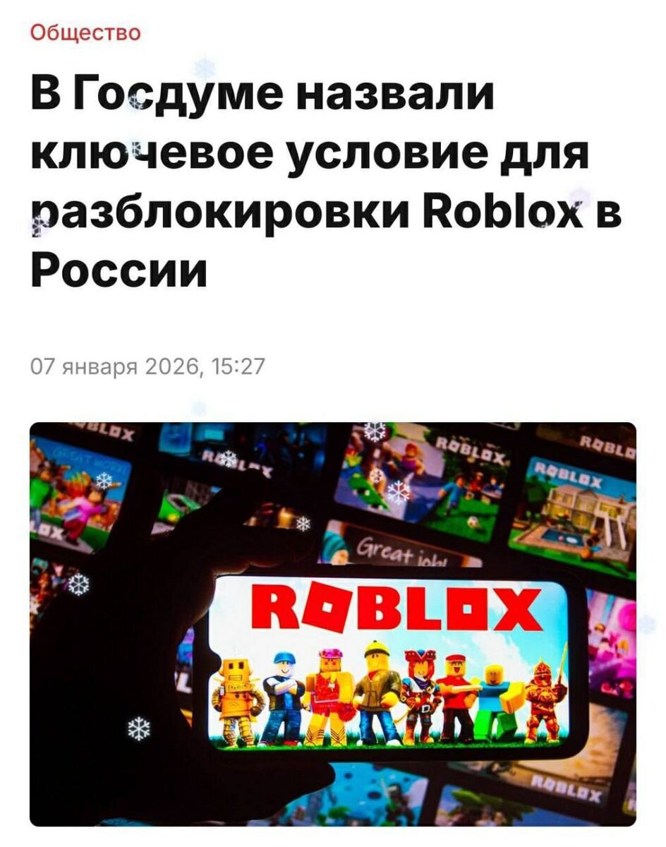 😭В Госдуме считают, что Roblox могут разблокировать в России не раньше чем через полгода