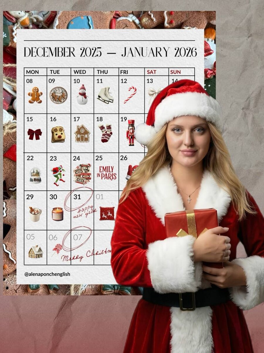 DAY 30 — РОЖДЕСТВО. ФИНАЛ ✨ Сегодня особенный день! 7 января. Рождество. И последний день нашего большого Адвента 🤍 Позади 30 дней челленджа и прокачки Английского! 📍За это время мы вместе: — говорили на английском каждый день — смотрели фильмы и сериалы в оригинале — разбирали песни, мемы и живые фразы — писали письма Санте — выходили из синдрома «я всё понимаю, но не говорю» — делали маленькие, но очень важные шаги И если ты здесь до конца — это уже результат! 📌Потому что язык растёт не от идеальности, а от регулярности и смелости. Рождественское задание (финальное) 🌺Напиши короткое письмо на английском: себе в будущее или человеку, которому хочешь сказать «спасибо» А в комментариях пиши фразу, с которой хочешь войти в Новый год! 🐎 ✨ От нашей команды PONCHENG — спасибо! Спасибо, что были с нами. Спасибо за доверие, реакции, сообщения, смелость писать и говорить. Этот Адвент — не про задания. Он был про состояние, в котором английский становится частью жизни. И да — эт