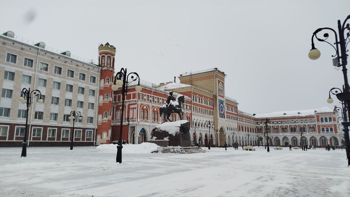 Ни одного музея сегодня не посмотрели...просто не хватило сил. С утра выехали в республику Марий Эл, в город Йошкар-ола. Небольшой городок. Но очень красиво смотрятся здания, построенные в различных архитектурных стилях под Европу, Москву и другие города. Выбрали самое зрелищное и построили. Здесь и площадь в венецианском стиле, рядом амстердамская набережная, собор а-ля Василия блаженного и Спаса на крови. Рядом Спасская башня, недостроенный венецианский дворец. В центре есть даже Царевококшайский кремль))) Последний, кстати не понравился. А вот все остальное просто супер. В лучших европейских традициях. Жаль только, что метель не дала спокойно насладиться этим городом. Сильный ветер и снег очень затрудняли прогулку и даже фотографирование. Ну а мы, погуляв по улицам города, решили пораньше выехать обратно в Казань, на улице стемнело и метель...трасса сложная.