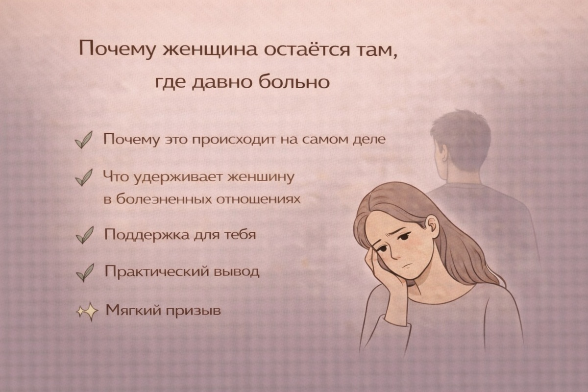 Когда женщина остаётся там, где ей больно, это редко про слабость.