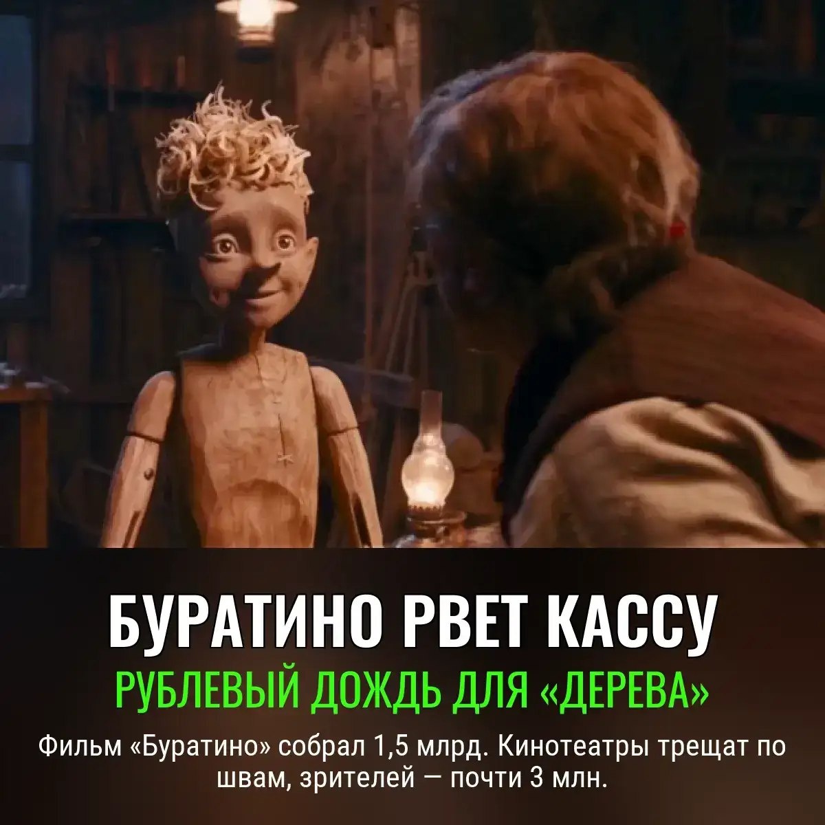 указки для подсчёта миллиардов. Режиссёр Волошин и композитор Рыбников заманили почти 3 млн россиян в кинотеатры—рекордный результат за первую неделю. Видно, у россиян снова проснулась тоска по «золотому ключику» и давно забытым сказкам: приключения мальчика из шпона теперь стоят дороже некоторых российских сериалов. Мораль? Дерево нынче в цене, особенно если оно приносит 1,5 миллиарда, а зрители голосуют рублём против унылой реальности., Следите за новостями 📩