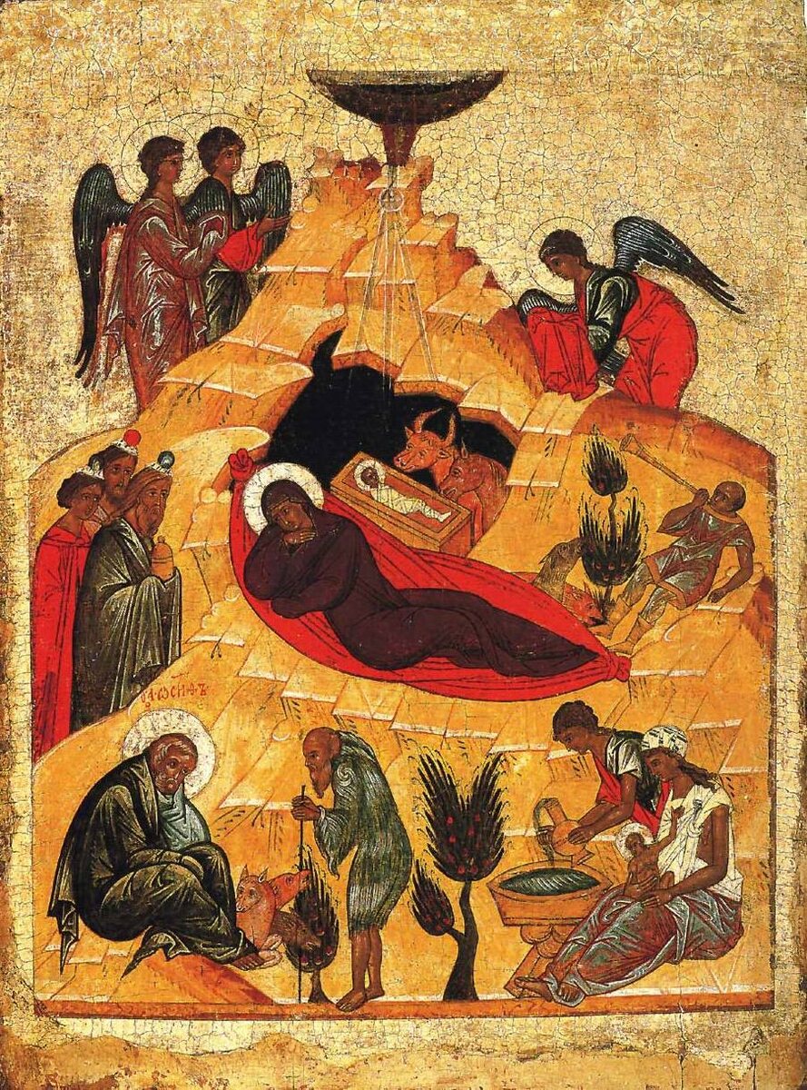 праведному, и Тебе ведети свыше восток, Господи слава Тебе. (Рождество Христово из праздничного чина церкви Николы Гостинопольского монастыря, к. XV в. Палаццо Леони Монтанари, Виченца)
