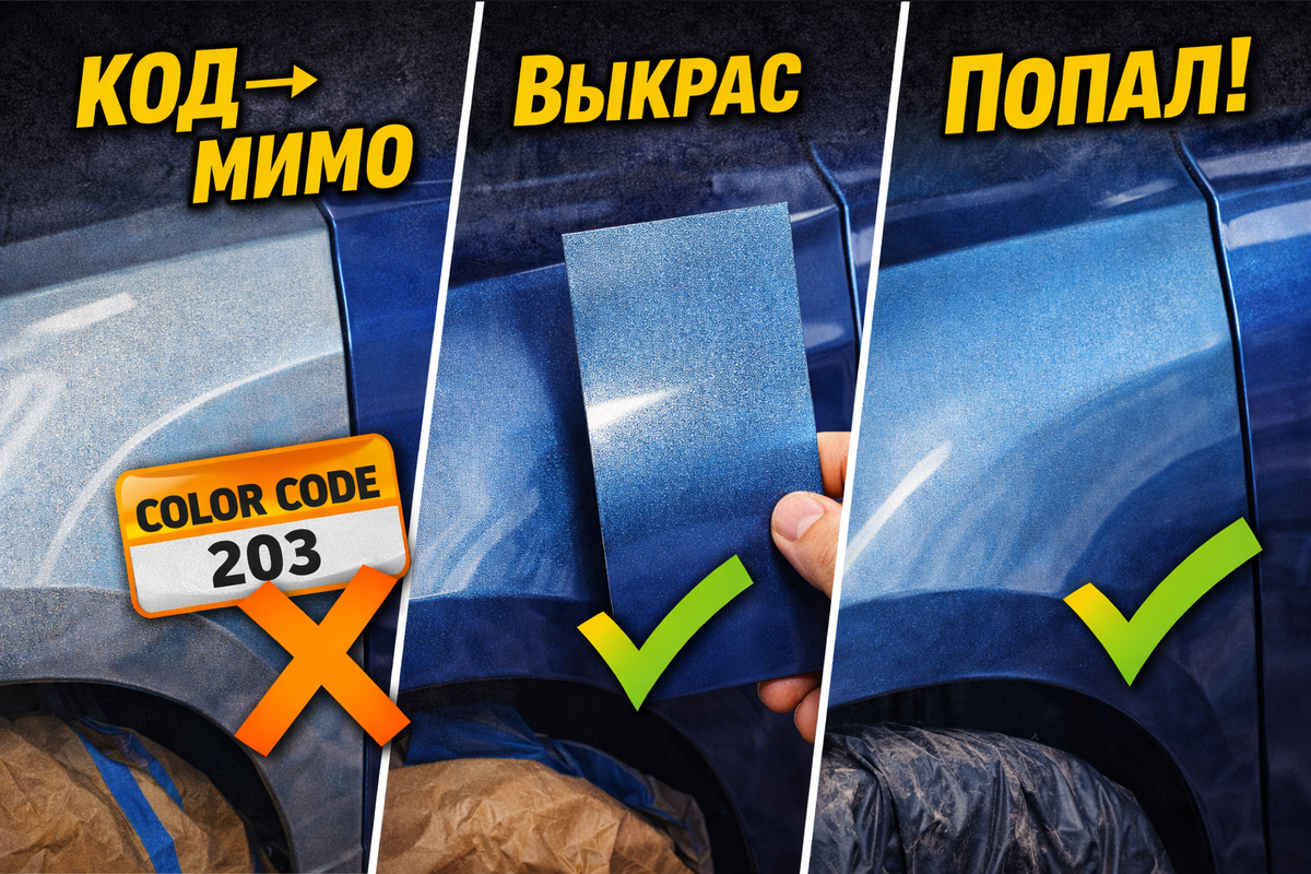 Смотри сюда: когда человек говорит “у меня код краски, сделайте один в один”, я уже понимаю, чем это закончится, если он без выкраса полезет красить. Я тебе так скажу — код это не волшебный пароль, это просто стартовая точка. Я через это проходил: мешали “по коду”, вроде красиво на палочке, а на машине рядом с дверью — другой оттенок, и всё, приехали. В моё время такого не было… да было, просто тогда меньше кто пытался чинить машину на коленке из баллона и ждать заводского совпадения. Сейчас объясню, как правильно: почему “по коду” мимо и что делать, чтобы глаз не цеплялся.