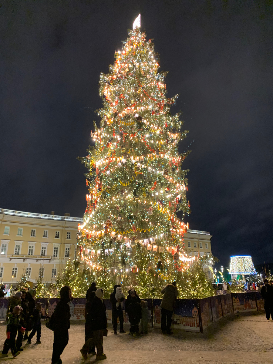 В центре Дворцовой площади ёлка, украшенная игрушками в виде щелкунчиков, избушек, лошадок и конфет.