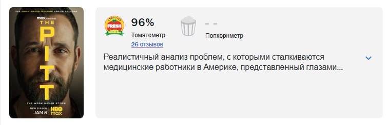 Второй сезон "Больницы Питт" набрал 96% свежести.