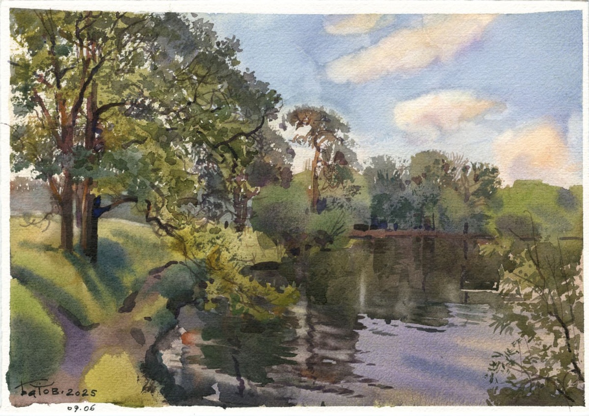 20250609 Пруд усадьбы Узкое / Pond Uzkoe. Moscow / 21x30 cm / plein air watercolor.
